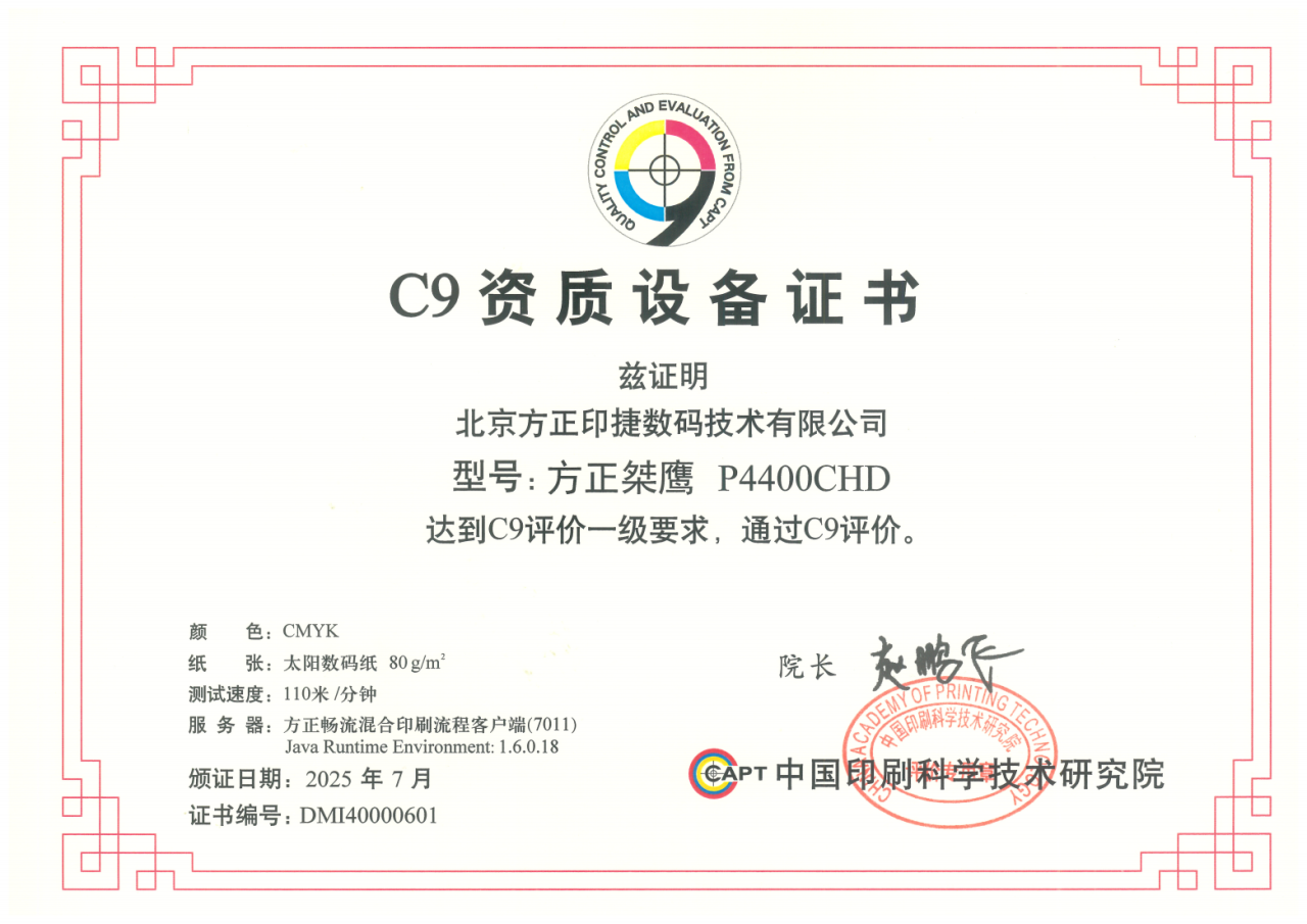 方正桀鷹噴墨印刷機榮獲C9認證!